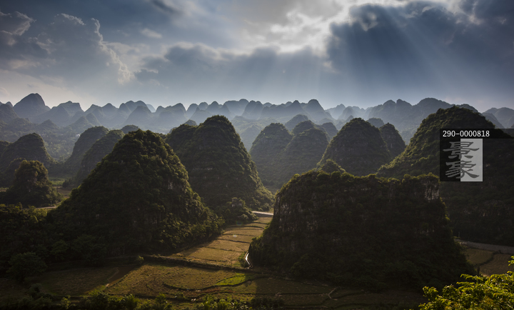 图片标题: 贵州省,兴义,万峰林,山峦叠翠,稻田,古民居