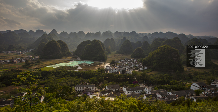 图片标题: 贵州省,兴义,万峰林,山峦叠翠,稻田,古民居