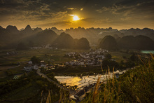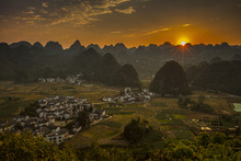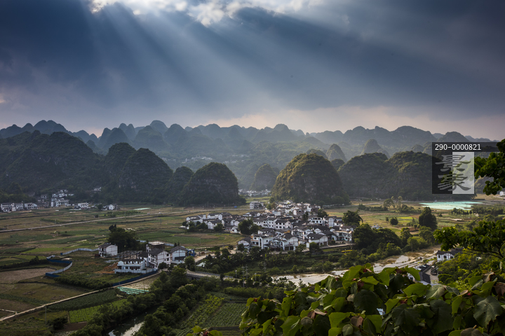 图片标题: 贵州省,兴义,万峰林,山峦叠翠,稻田,古民居