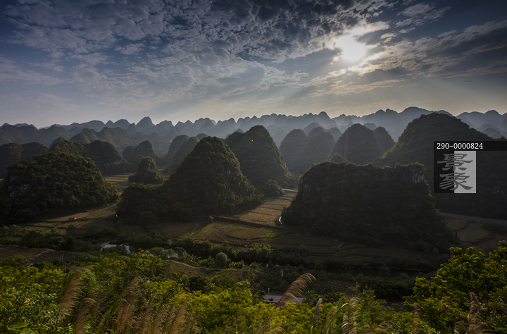 图片标题: 贵州省,兴义,万峰林,山峦叠翠,稻田,古民居