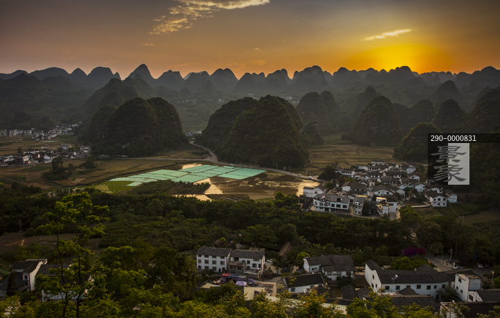 图片标题: 贵州省,兴义,万峰林,山峦叠翠,稻田,古民居