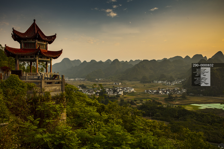 图片标题: 贵州省,兴义,万峰林,山峦叠翠,稻田,古民居