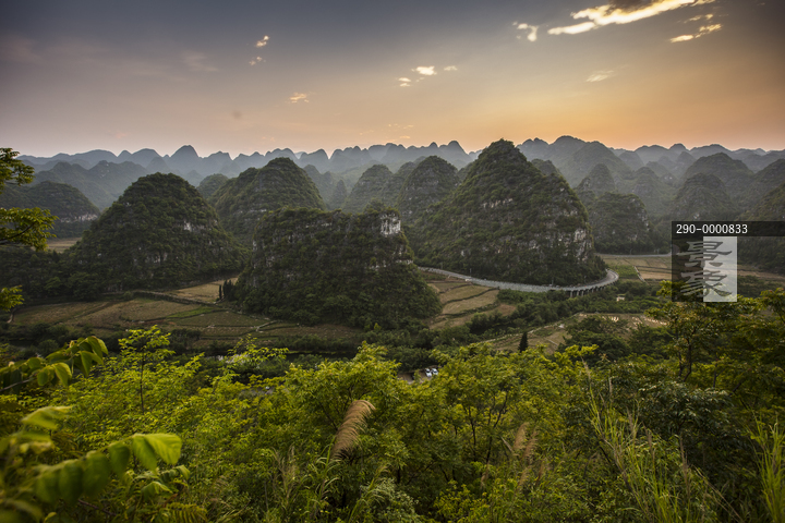 图片标题: 贵州省,兴义,万峰林,山峦叠翠,稻田,古民居