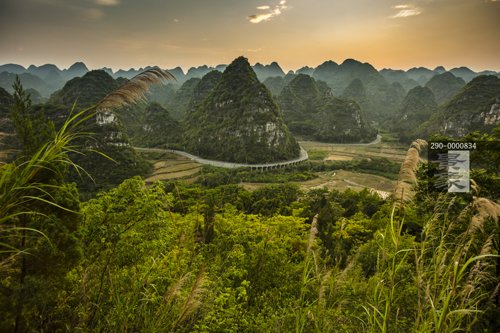 图片标题: 贵州省,兴义,万峰林,山峦叠翠,稻田,古民居