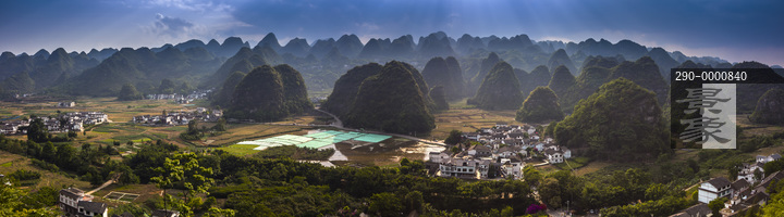 图片标题: 贵州省,兴义,万峰林,山峦叠翠,稻田,古民居