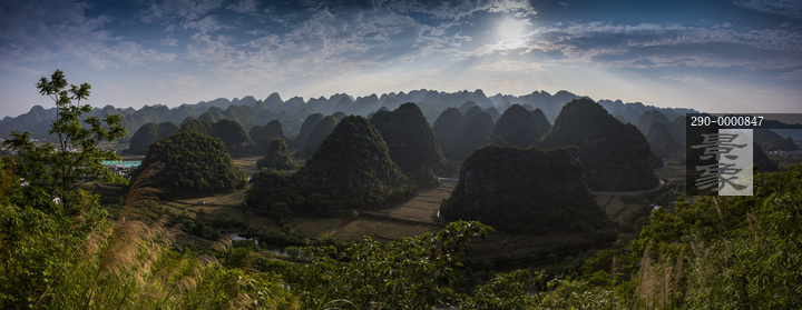 图片标题: 贵州省,兴义,万峰林,山峦叠翠,稻田,古民居