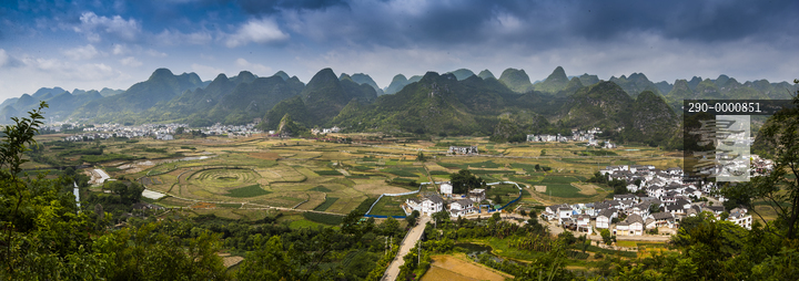 图片标题: 贵州省,兴义,万峰林,山峦叠翠,稻田,古民居