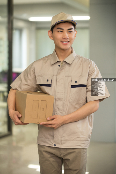 图片标题:     男快递员拿着包裹