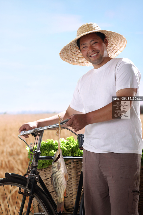 图片标题: 一个农民站在麦田里