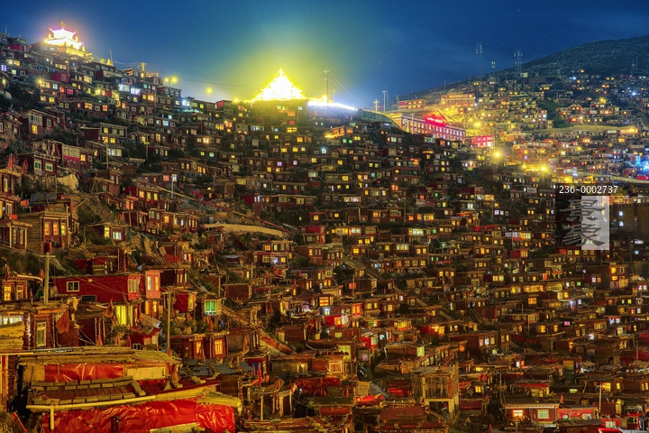 图片标题: 四川省色达五明佛学院夜景