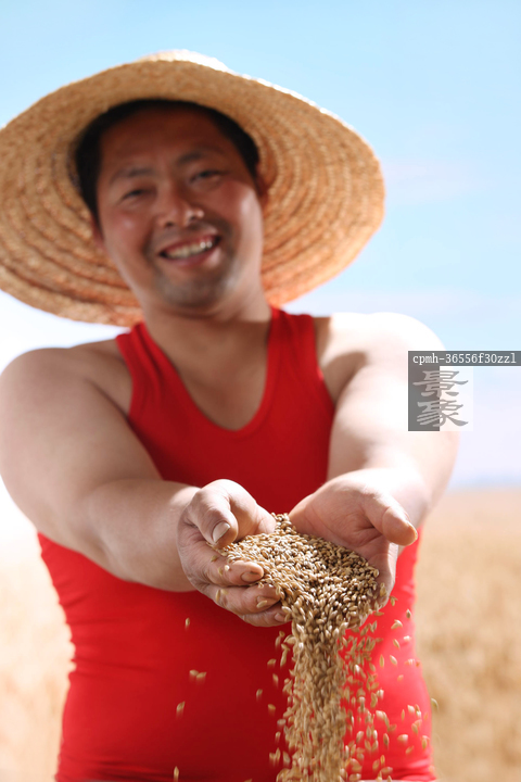 图片标题: 一个农民手捧小麦