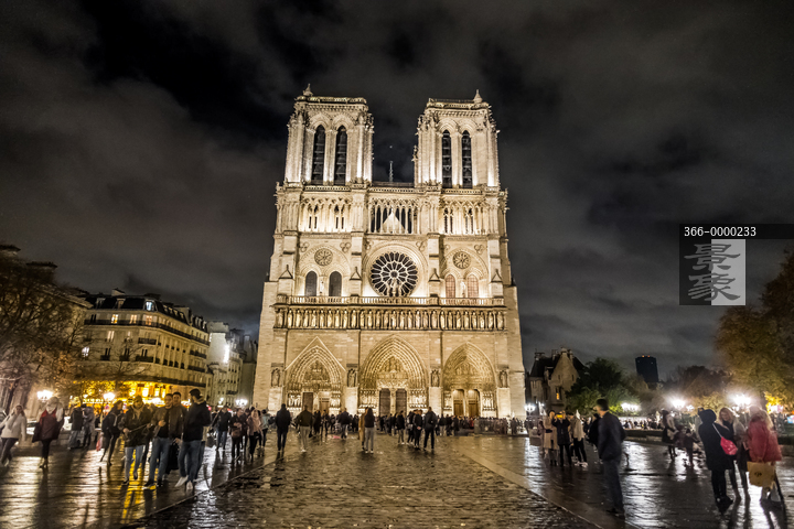 图片标题: 巴黎圣母院夜景