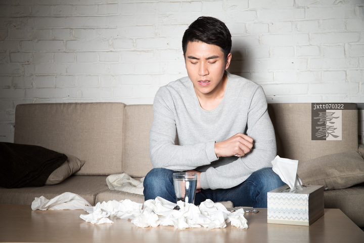 图片标题: 青年男人生病