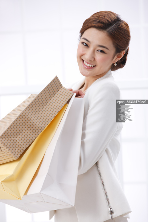图片标题: 青年商务女士拿购物袋