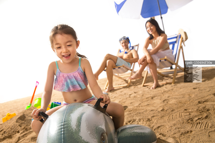 图片标题: 幸福家庭在沙滩上玩耍
