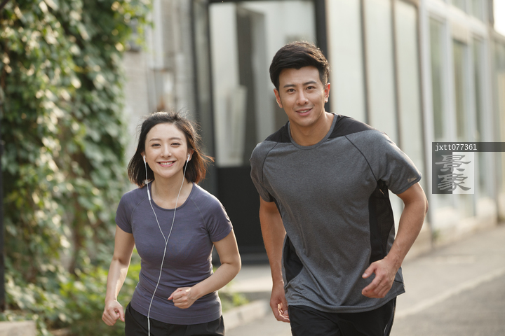 图片标题: 青年情侣跑步健身