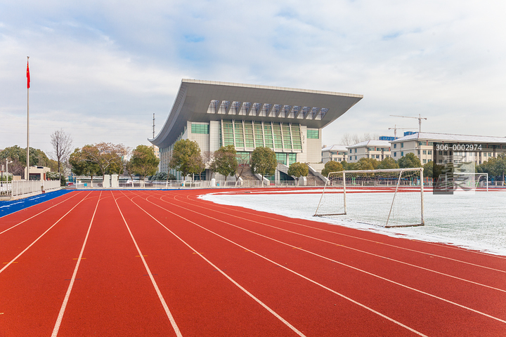 图片标题: 体育运动场与建筑雪景