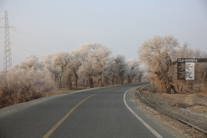 图片标题: 新疆塔克拉玛干沙漠胡杨雾凇美景迷人