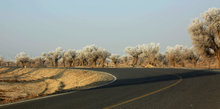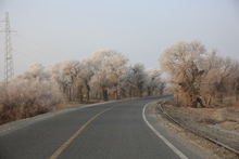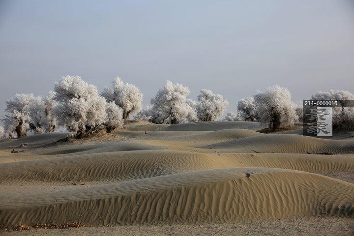 图片标题: 新疆塔克拉玛干沙漠胡杨雾凇美景迷人