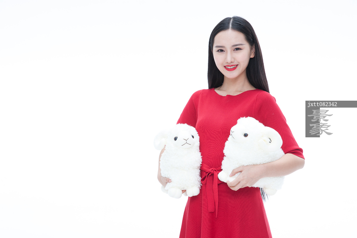 图片标题: 拿着毛绒玩具的年轻女人