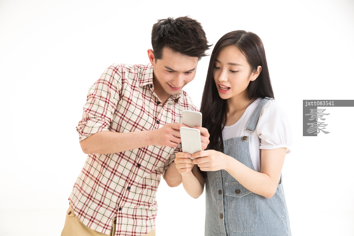 图片标题: 青年情侣用手机拍照