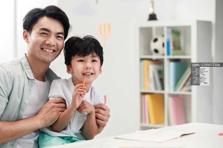 图片标题: 爸爸辅导儿子做作业