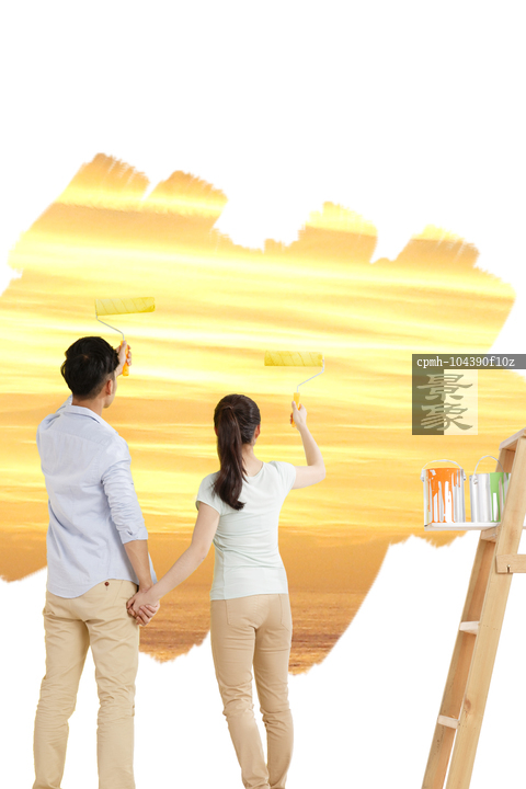 图片标题: 青年夫妇在为墙壁涂染料