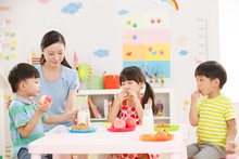 图片标题: 老师和儿童在娱乐室玩耍