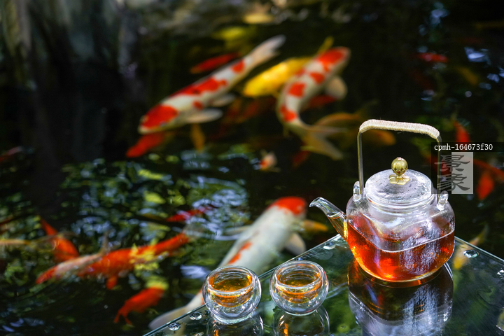 图片标题: 池塘边的茶具