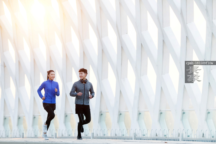 图片标题: 青年情侣户外慢跑