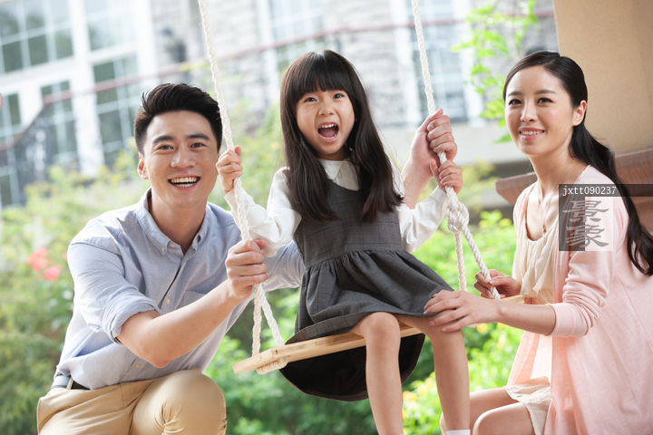 图片标题: 快乐家庭在户外玩耍
