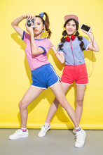 图片标题: 年轻女孩拿着话筒
