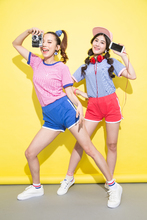图片标题: 年轻女孩拿着话筒