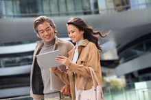 图片标题: 商务人士在户外交谈