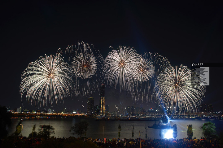 图片标题: 烟火,63年建筑,大桥,汝矣岛邯钢河,首尔,韩国