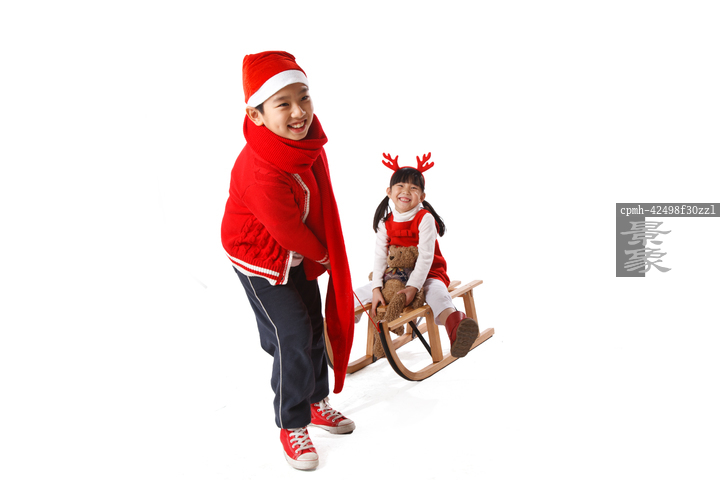 图片标题: 儿童圣诞节拉雪橇