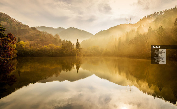 图片标题: 秋天,雾,水库,