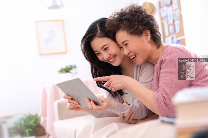 图片标题: 快乐母女看平板电脑