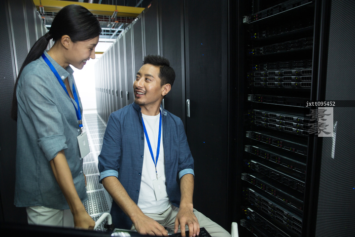 图片标题: 技术人员在机房检查维修