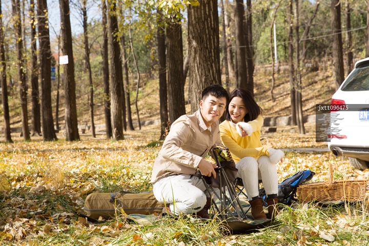 图片标题: 青年男女在户外郊游