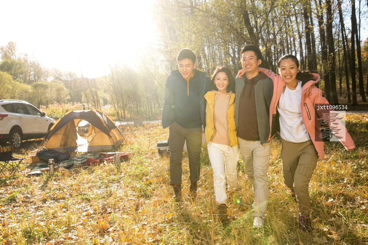 图片标题: 青年男女在户外露营