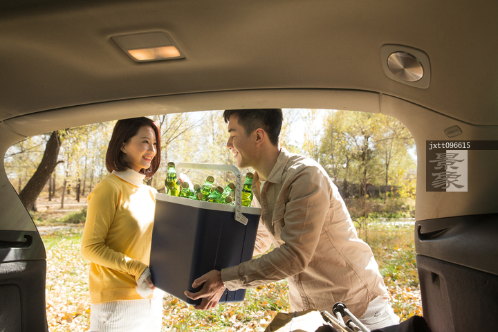 图片标题: 青年男女在户外露营