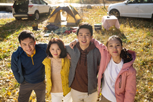 图片标题: 青年男女在户外露营