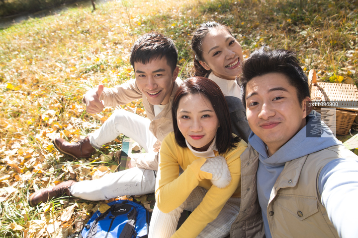 图片标题: 青年男女在户外郊游