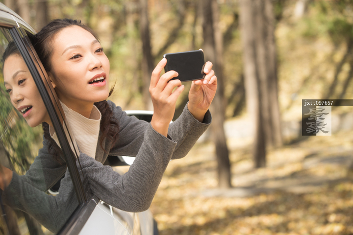 图片标题: 青年女人户外郊游