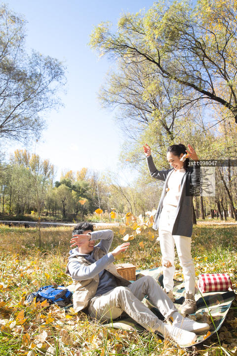 图片标题: 青年男女在户外露营
