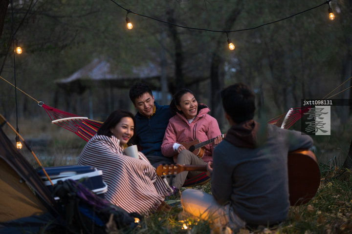 图片标题: 青年男女在户外露营