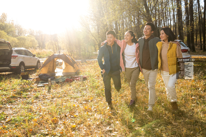 图片标题: 青年男女在户外露营