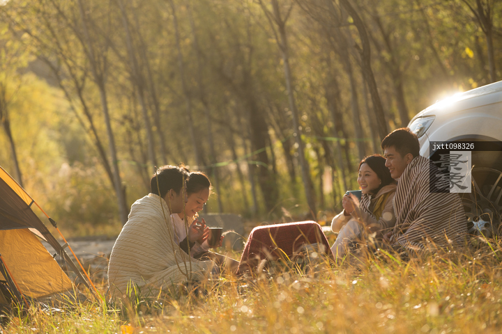 图片标题: 青年男女在户外露营