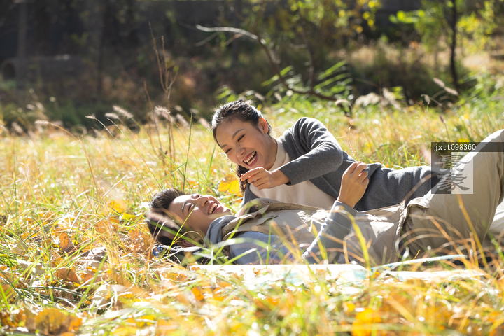 图片标题: 青年男女在户外郊游